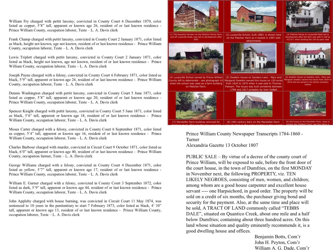 Another local database “History not shared is history lost” for Prince William County and is run by Ron Turner. I LOVE THIS!! Immaculately kept. Clean and simple. The Images page is great as all the images are shown and clearly labeled without having to click here or there or go to multiple pages. The African American Records tab appears rather extensive and documents are all transcribed; it would be nice to see scans of the originals, lack of such is a weakness.